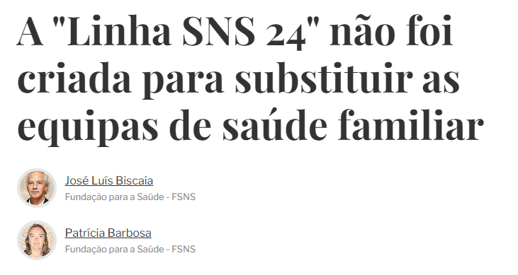 Na sequência do 𝐌𝐚𝐧𝐢𝐟𝐞𝐬𝐭𝐨 𝐬𝐨𝐛𝐫𝐞 𝐨𝐬 𝐜𝐮𝐢𝐝𝐚𝐝𝐨𝐬 𝐝𝐞 𝐬𝐚𝐮́𝐝𝐞 𝐚 𝐪𝐮𝐞 𝐭𝐞𝐦𝐨𝐬 𝐝𝐢𝐫𝐞𝐢𝐭𝐨 - 𝐚 𝐠𝐞𝐬𝐭𝐚̃𝐨 𝐝𝐨 𝐚𝐜𝐞𝐬𝐬𝐨 𝐚 𝐜𝐮𝐢𝐝𝐚𝐝𝐨𝐬 𝐝𝐞 𝐬𝐚𝐮́𝐝𝐞 𝐞𝐦 𝐜𝐚𝐬𝐨 𝐝𝐞 𝐝𝐨𝐞𝐧𝐜̧𝐚 𝐚𝐠𝐮𝐝𝐚, subscrito por 30 personalidades atentas ao futuro do SNS, Patrícia Barbosa e Jose Luís Biscaia, da Fundação para a Saúde, assinam um artigo in Jornal de Notícias.